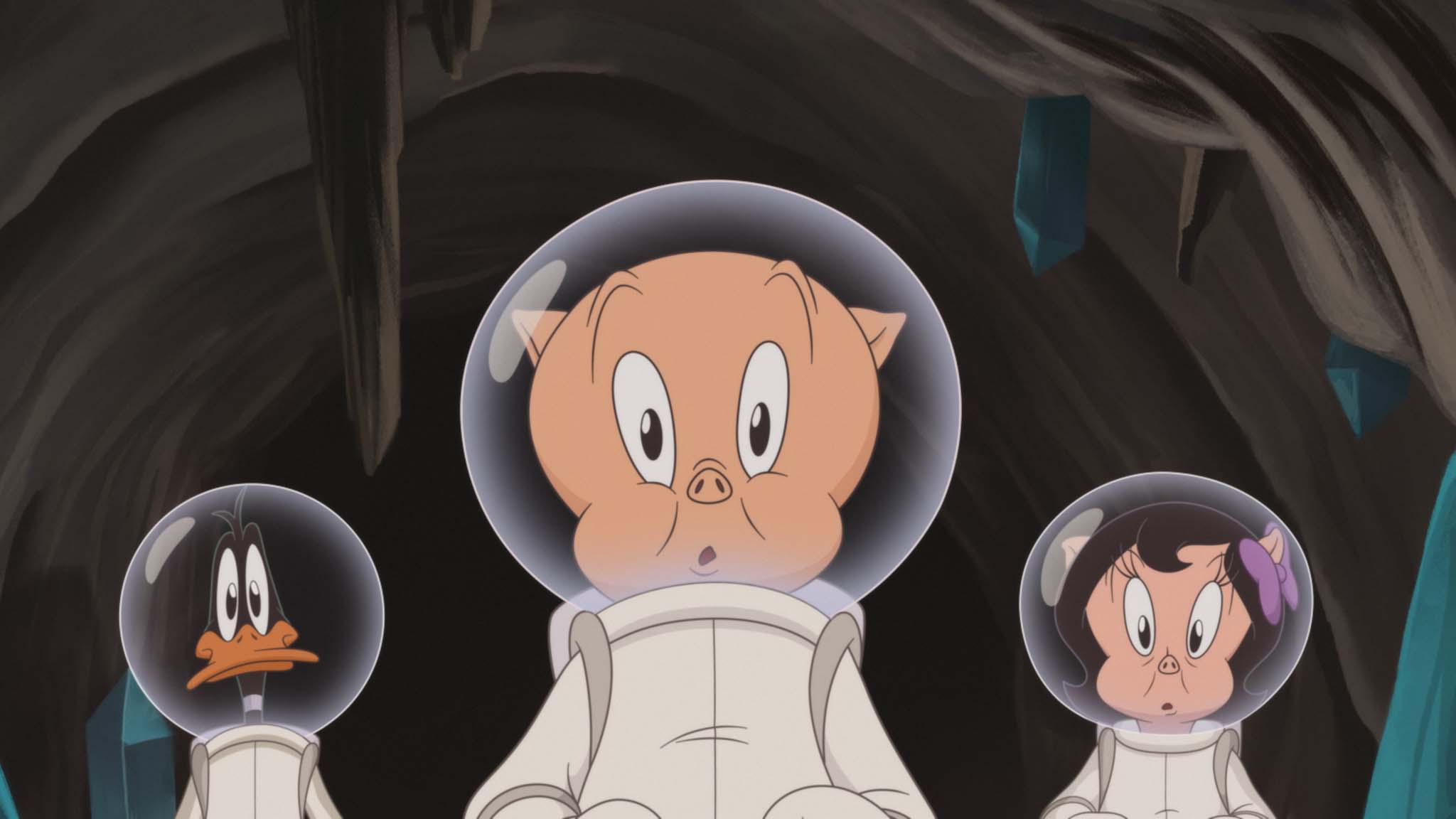 Daffy Duck (voiced by Eric Bauza) and Porky Pig (Bauza again) are raised together by Farmer Jim (Fred Tatasciore) on the outskirts of Grandview, home to the Goodie Gum factory. As a piglet, Porky suffers a blow to the head from a falling vase and develops his trademark stutter and the pair become inseparable, often getting into scrapes thanks to Daffy’s hot-headed actions. Inspector Mrs Grecht (Laraine Newman) conducts an annual standards review of the duo’s home and points out a huge hole in the roof, caused by a crash-landed UFO.