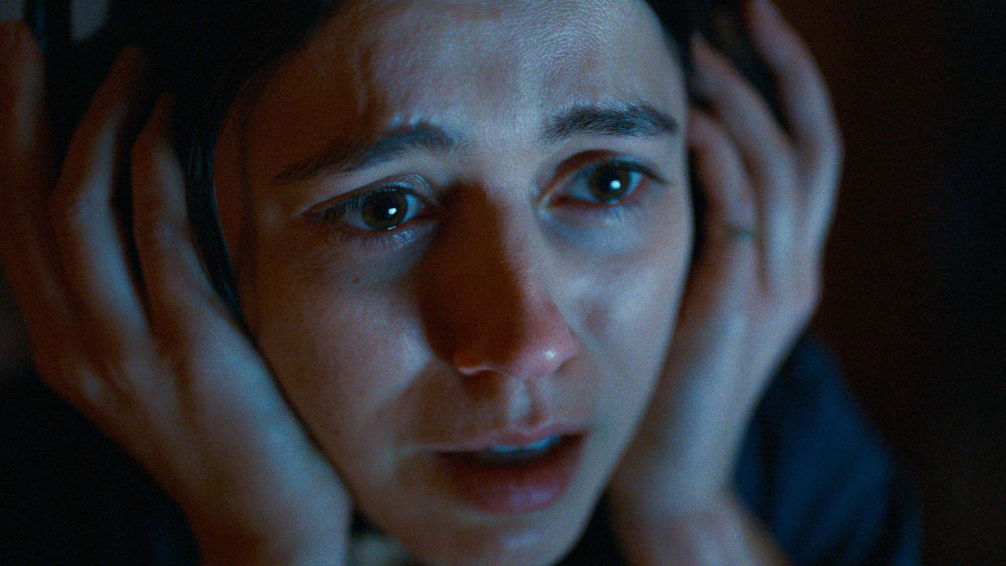 Evangeline Babic (Nina Kiri), known affectionately to friends as Evy, cares for her comatose mother (Michele Duquet) in the family home. At around 3am, she records episodes of The Undertone podcast with her good friend Justin (voiced by Adam DiMarco), who is based in London. The time difference between self-declared “in-house sceptic” Evy and her believer co-host accounts for the ungodly time that Evy dons noise-cancelling headphones in her mother’s darkened living room to record her part of the conversation. For the latest instalment of the show, Evy and Justin listen to a series of 10 recordings emailed anonymously by one of the listeners.